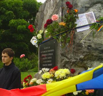 În conformitate cu decretul emis, anul trecut, la 28 iunie a fost instalată în PMAN o piatră comemorativă pe locul unde urmează să fie ridicat un monument în memoria victimelor ocupaţiei sovietice. În loc să punem câte un leu pentru ridicarea monumentului pe locul celui demolat (al lui Lenin), de un an comentăm că , acum 15 ani, un alt Ghimpu, deţinut politic în anii 80, a pus o piatră în faţa gării, unde au fost încărcaţi în vagoane pentru vite deportaţii din 1949, şi nu se vede încă monumentul. Dar ce aţi crezut, că Gheorghe Ghimpu avea bani dupa ce făcuse 8 ani de puşcărie la ruşi?