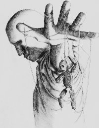 cu arta sa  trăgând de sfori, de nevăzute aţe,